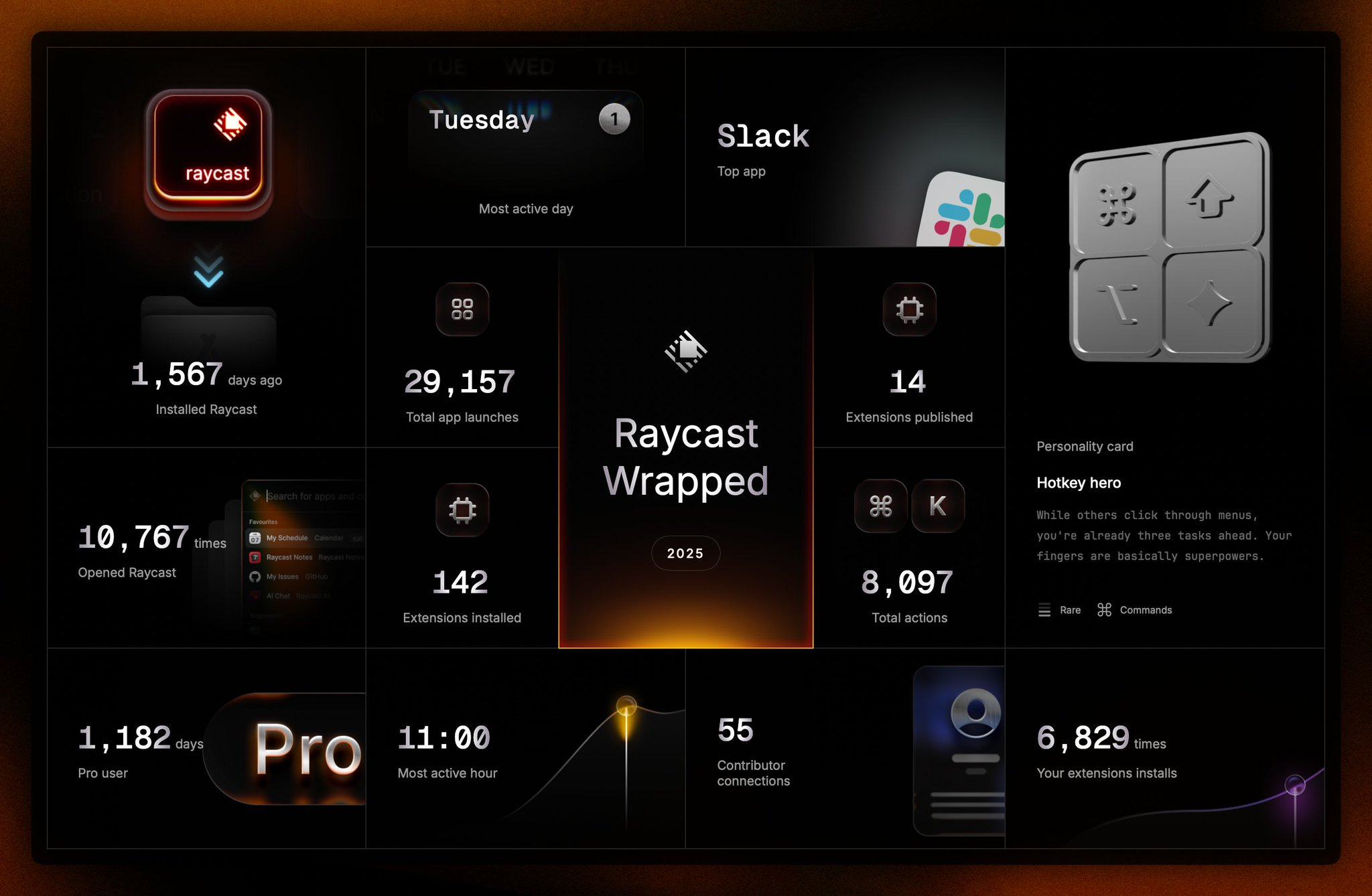 The latest Raycast Wrapped designed by Jordan Amblin is a perfect example of the high bar kept by this team.